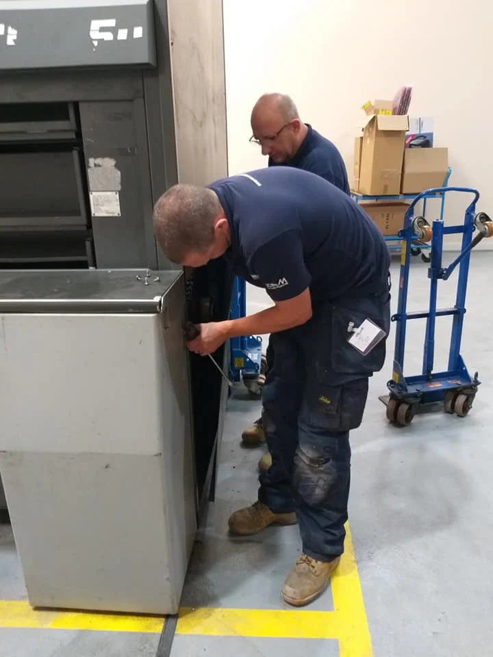 We agreed that we would reposition the machine in a corner close to the original location. For this we needed specialist knowledge, and lifting experience, along with a bit of old-fashioned manpower.