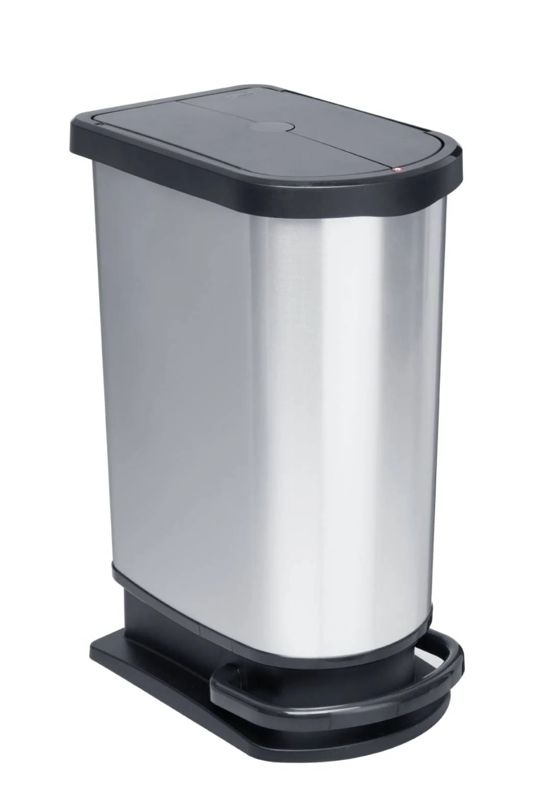 - Hands free operation pedal bin featuring a butterfly soft closing lid & integrated bad holder